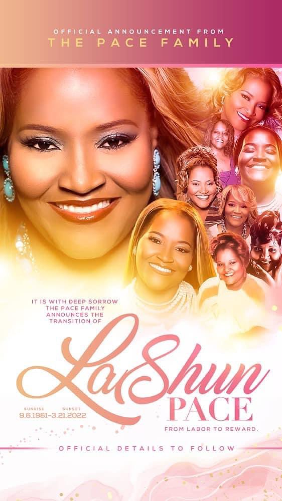 Gospel singer LaShun Pace passes away at age 60 - LemonWire Popular Gospel singer LaShun Pace passed away Monday, Mar. 21, 2022. Her death was reported by numerous media outlets. Fans of Gospel music felt the loss of the powerhouse soprano whose voice not only hit the right notes, but also conveyed the messages that Gospel fans seek. The sound and style of LaShun Pace From […]