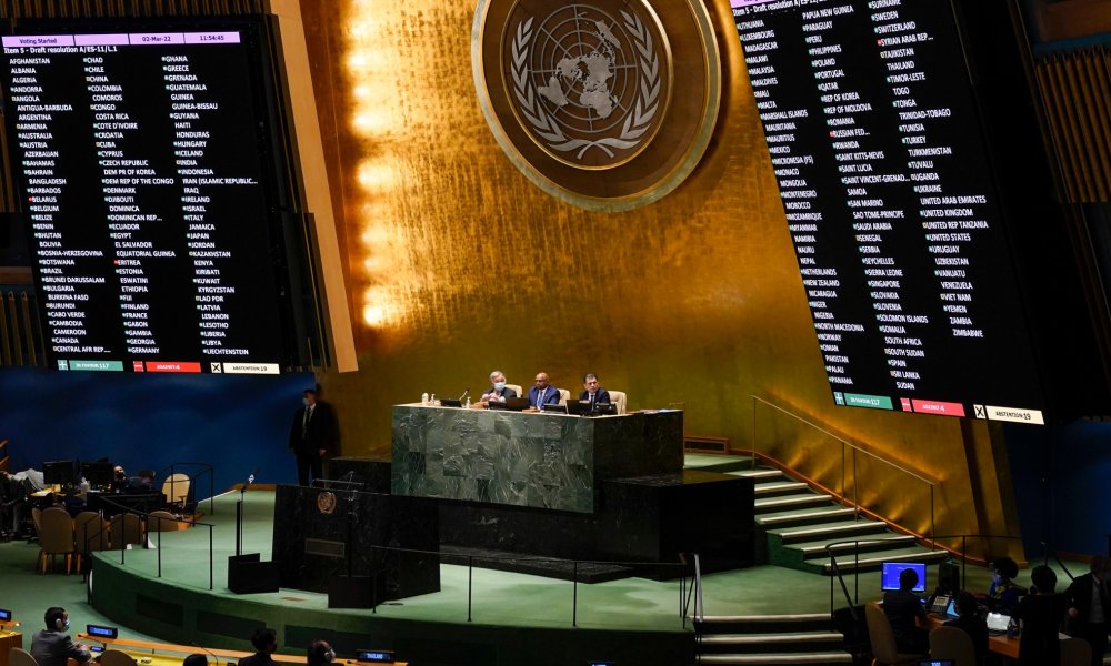 UN General Assembly: the result of the Russia-Ukraine vote 1 day ago — 141 nations backed the UN General Assembly vote to demand Russia withdraws from Ukraine ... The UN General Assembly voted overwhelmingly to demand ...