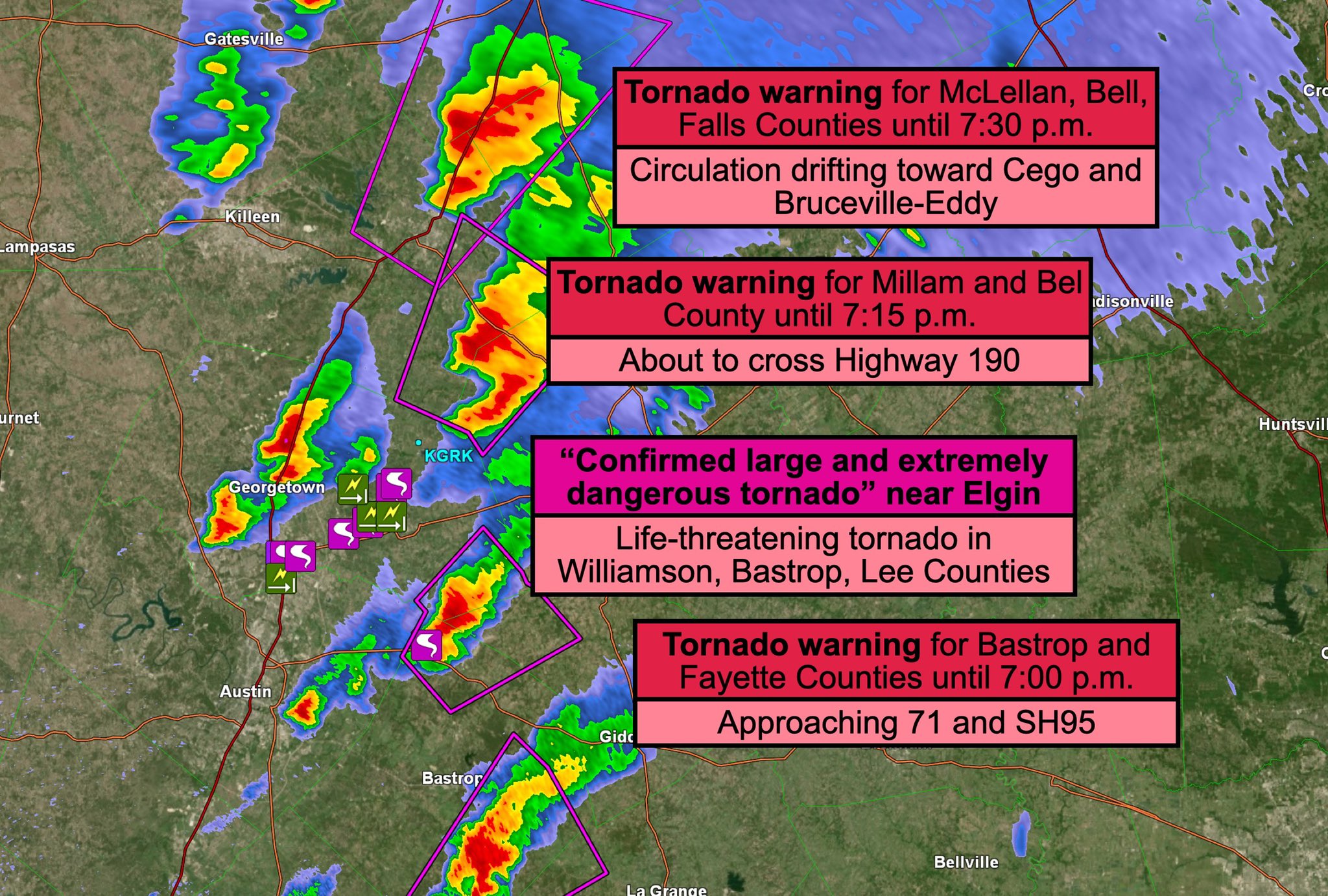 Flights grounded and homes damaged after tornadoes in ... Parts of central and east Texas, including Austin and College Station areas, also had severe storms reported as tornadoes, the National Weather Service said.